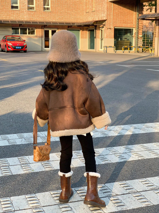 Manteau Fille Hiver 2025 – Cuir & Daim Épais